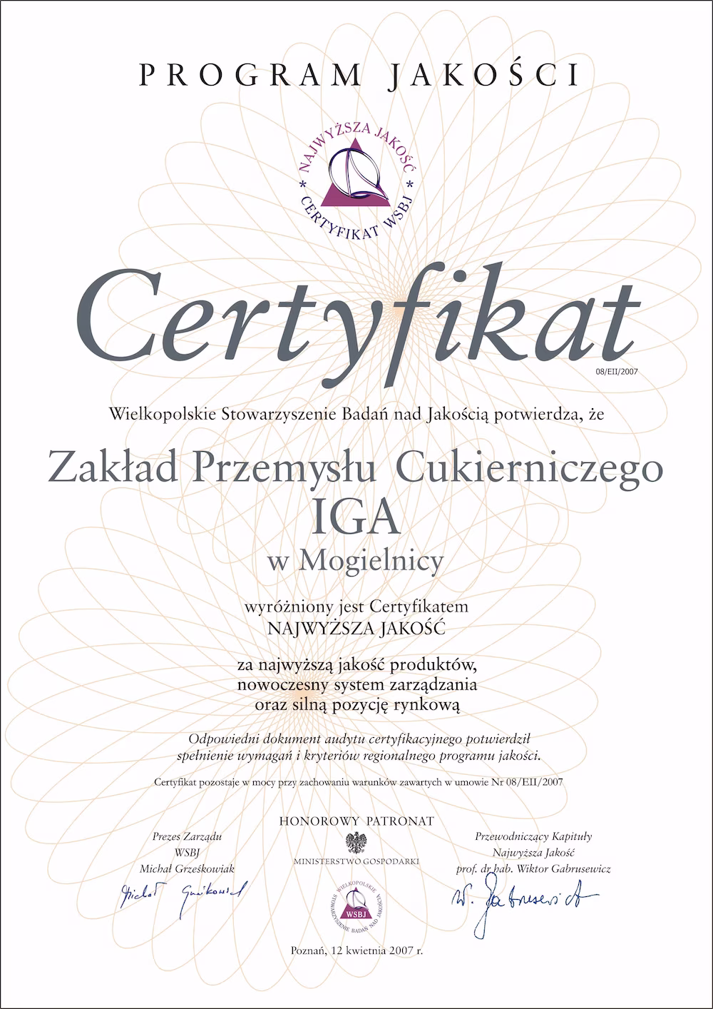 Spełniamy wszystkie wymogi technologiczne, jakie obowiązują w produkcji żywności. Rozwijamy się dzięki naszym Klientom, którzy doceniają nasze wyroby. Pragniemy, żeby nasz znak kojarzył się z solidnością, terminowością oraz wysoką jakością produkowanych przez nas wyrobów.